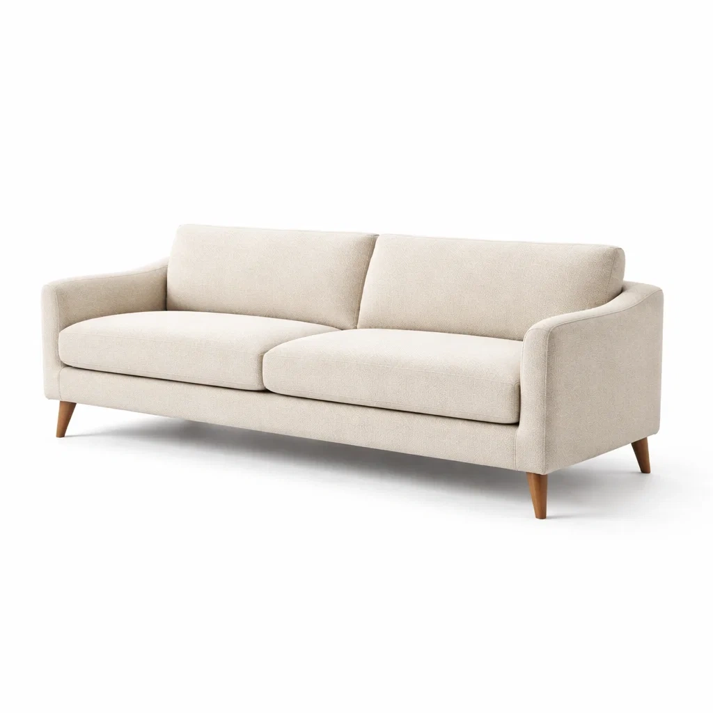 Sofa beige stoff mit holzbeinen
