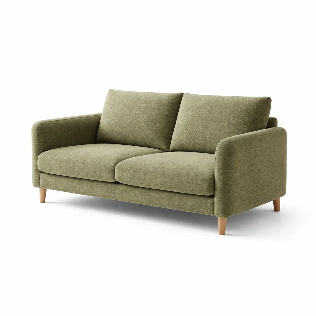 Sofa stoff grün mit holzbeinen